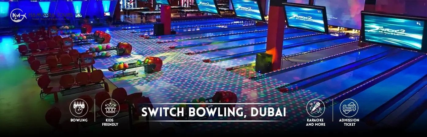 Switch Bowling Dubai is an indoor entertainment center offering bowling, billiards, karaoke, and PlayStation gaming under one roof.